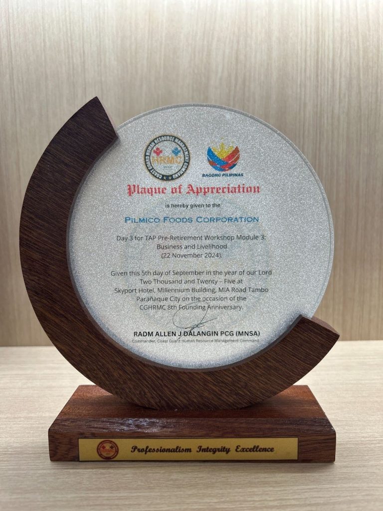 Pilmico Foods Corporation (Pilmico) was recognized on September 5, 2025, during the 8th Founding Anniversary of the Philippine Coast Guard Human Resource Management Command (CGHRMC), themed “CGHRMC@8: Steadfast Commitment in Nurturing Coast Guardians from Entry to Legacy.”